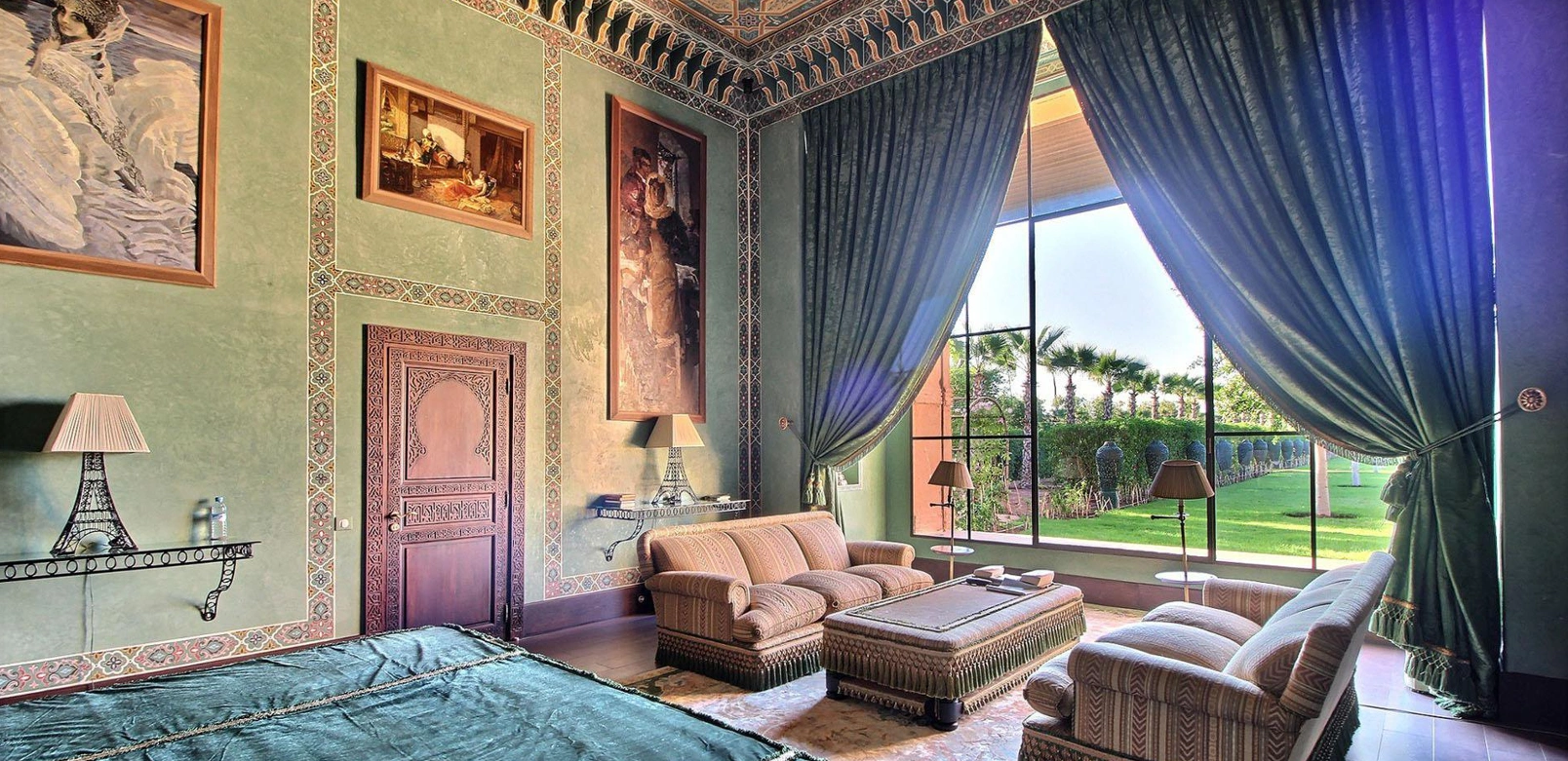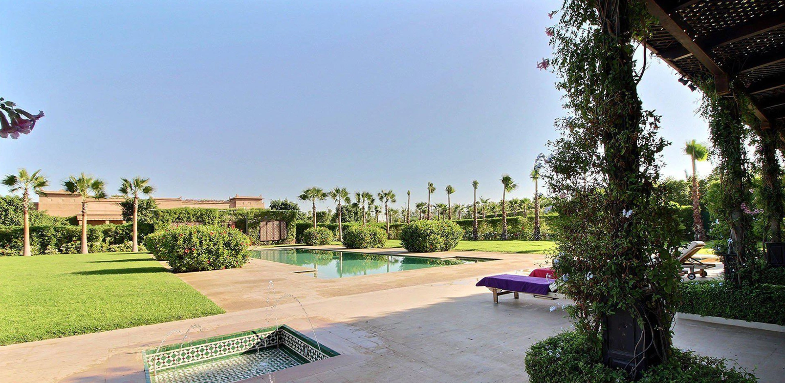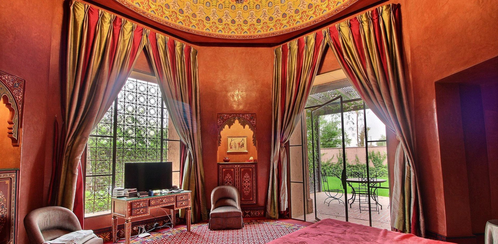 Dans la Palmeraie de Marrakech, découvrez ce somptueux palais de 1 800 m² habitables, niché au cœur d’un terrain de 2 hectares offrant une vue imprenable sur l’Atlas. Largement inspiré de l’Alhambra de Grenade, ce chef-d’œuvre architectural séduit par ses proportions harmonieuses, ses volumes majestueux et son raffinement andalou. Le palais comprend plusieurs salons de réception, une bibliothèque, une superbe cuisine avec arrière-cuisine, ainsi que cinq suites, dont quatre disposent chacune de deux salles de bains et d’un dressing. Au sous-sol, un espace bien-être d’exception vous attend : spa, hammam traditionnel, salons cosy, bar et discothèque privée, pour des moments de détente et de convivialité incomparables. Le parc paysager émerveille par sa magnifique roseraie, ses potagers, son espace piscine avec pool house, son terrain de tennis et ses pavillons de jardin offrant des coins intimistes pour se détendre ou se restaurer en toute tranquillité. Une possibilité d’extension du domaine est également envisageable pour répondre à vos projets les plus ambitieux.