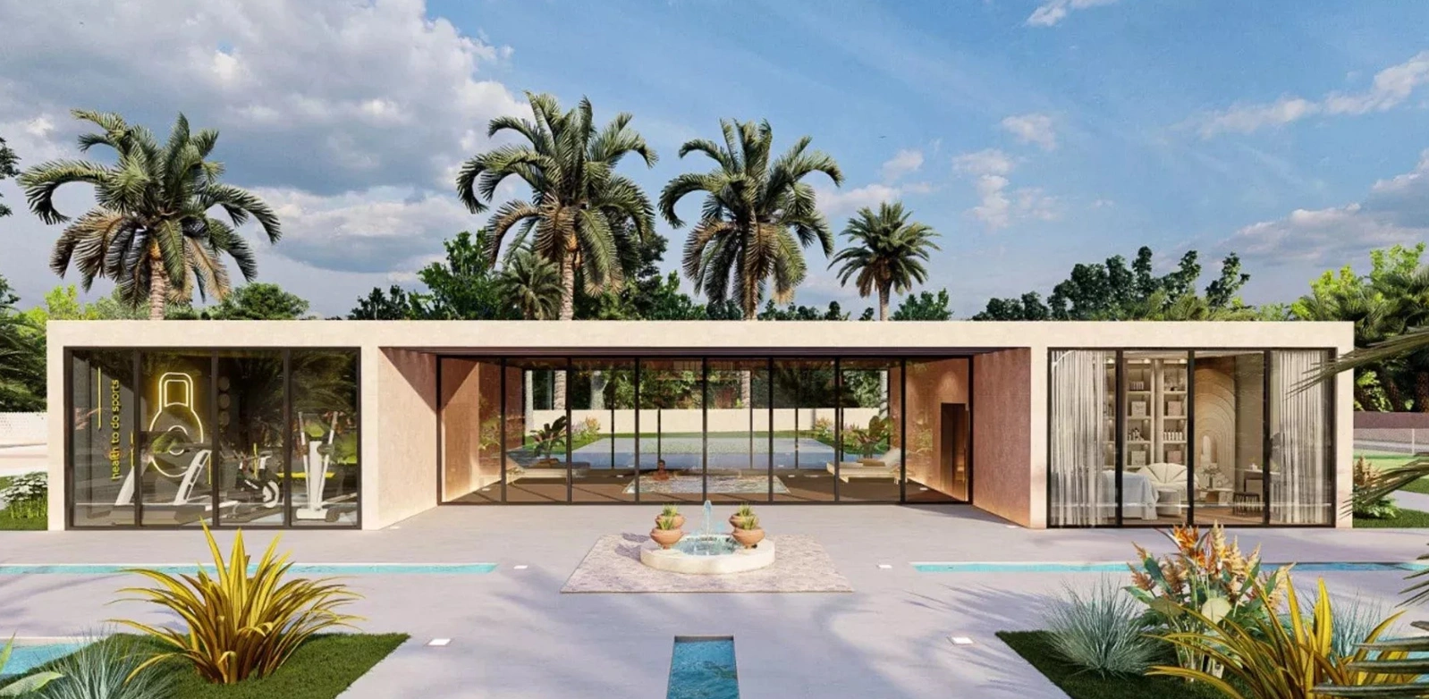 L’étage est entièrement dédié à l’espace nuit et comprend quatre chambres spacieuses avec salles de bains privées. Deux grandes terrasses offrent une vue imprenable sur le domaine, tandis que le patio central se prolonge à l’étage, créant un véritable havre de paix et de lumière. Espaces extérieurs et annexes La propriété s’apparente à un véritable resort privé, comprenant : Une piscine principale entourée de jardins soigneusement paysagers. Un bâtiment annexe entièrement dédié au sport et au bien-être, comprenant : Une salle de sport (gym/musculation) avec vestiaires et douches. Un espace spa et bien-être avec salle de massage, sauna et vestiaires. Une piscine extérieure située entre les deux modules de l’annexe. Surface et volumes Surface totale du terrain : 10 000 m² Villa principale – emprise au sol : 428 m² Bâtiment annexe : 107,6 m² Surface totale construite au sol : 535,6 m² Surface totale des planchers (SHON/SHOB) : 773,12 m² (incluant sous-sol, étage et annexes)