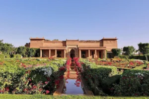 Dans la Palmeraie de Marrakech, découvrez ce somptueux palais de 1 800 m² habitables, niché au cœur d’un terrain de 2 hectares offrant une vue imprenable sur l’Atlas.